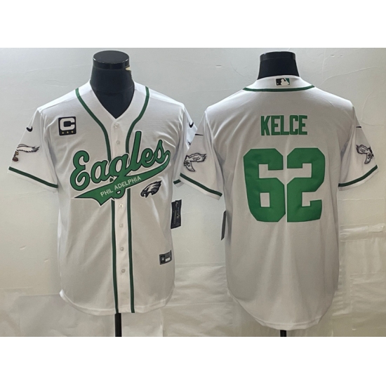 Men's Nike Philadelphia Eagles #62 Jason Kelce White C Cool Base Stitched Baseball Jersey