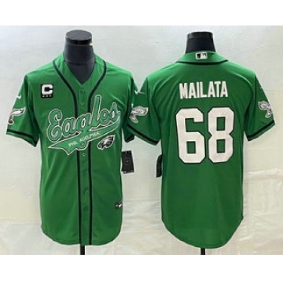 >Men's Nike Philadelphia Eagles #68 Jordan Mailata Green C Cool Base Stitched Baseball Jersey