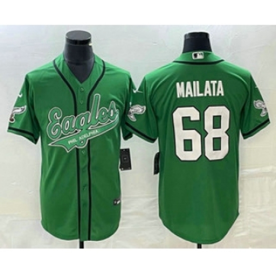 Men's Philadelphia Eagles #68 Jordan Mailata Green With Super Bowl LVII Patch Cool Base Stitched Baseball Jersey