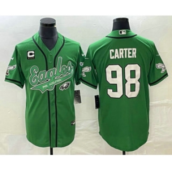 Men's Nike Philadelphia Eagles #98 Jalen Carter Green C Cool Base Stitched Baseball Jersey