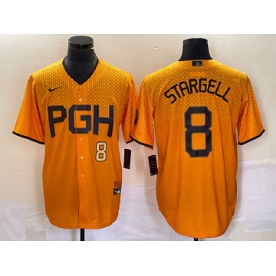 Men's Nike Pittsburgh Pirates #8 Willie Stargell Number Gold 2023 City Connect Stitched Jersey 2