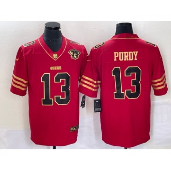 Men's Nike San Francisco 49ers #13 Brock Purdy Red 75th Golden Edition Stitched Limited Jersey