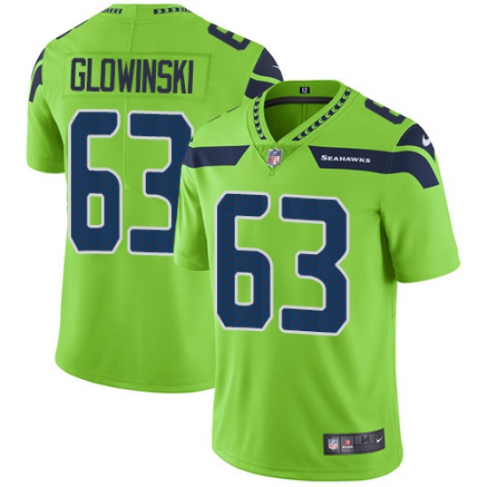 Home>NFL>Seattle Seahawks>Mark Glowinski>Men's Nike Seattle Seahawks #63 Mark Glowinski Limited Green Rush Vapor Untouchable NFL Jersey