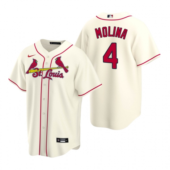 Men's Nike St. Louis Cardinals #4 Yadier Molina Cream Alternate Stitched Baseball Jersey