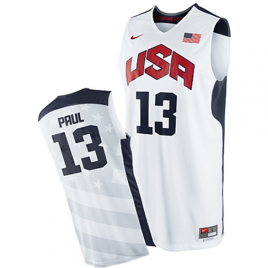 Home>NBA>Team USA>Chris Paul>Men's Nike Team USA #13 Chris Paul Authentic White 2012 Olympics Basketball Jersey