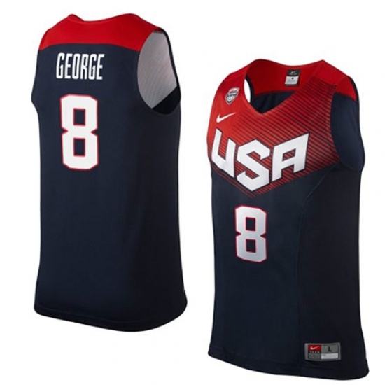 Men's Nike Team USA #8 Paul George Swingman Navy Blue 2014 Dream Team Basketball Jersey