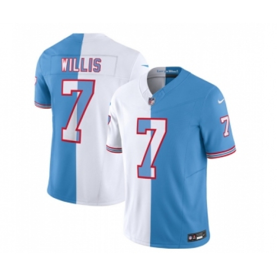Men's Nike Tennessee Titans #7 Malik Willis White Blue 2023 F.U.S.E. Split Vapor Limited Throwback Football Stitched Jersey