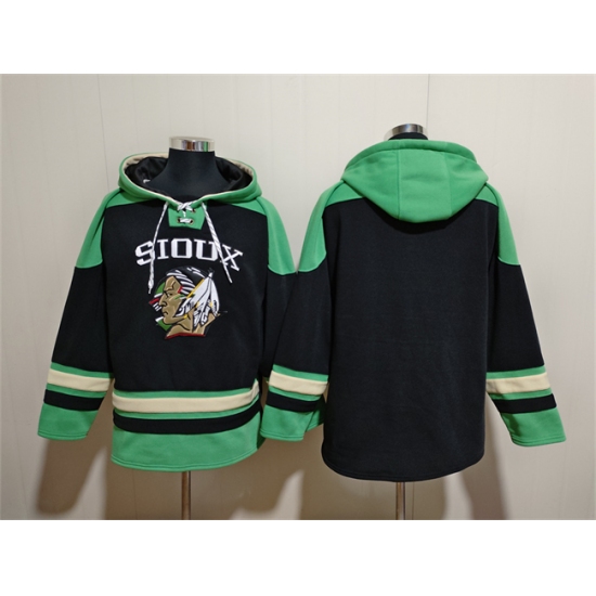Men's North Dakota Fighting Hawks Blank Black Green Lace-Up Pullover Hoodie