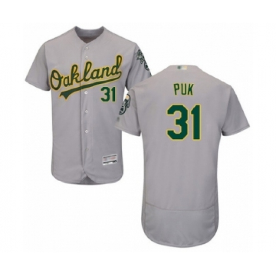 >Men's Oakland Athletics #31 A.J. Puk Grey Road Flex Base Authentic Collection Baseball Player Jersey
