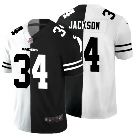 >Men's Oakland Raiders #34 Bo Jackson Black White Limited Split Fashion Football Jersey