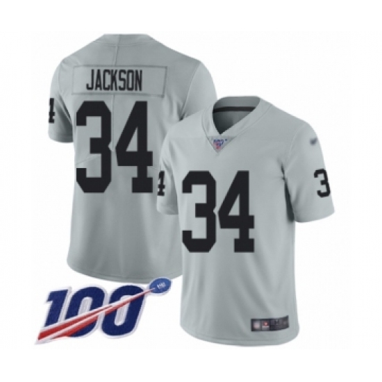 Men's Oakland Raiders #34 Bo Jackson Limited Silver Inverted Legend 100th Season Football Jersey