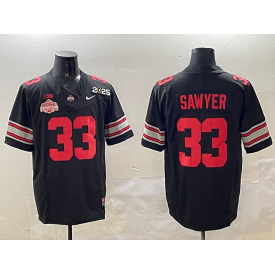 >Men's Ohio State Buckeyes #33 Jack Sawyer Black 2025 CFP Final With National Champions F.U.S.E. Vapor Limited Stitched Football Jersey