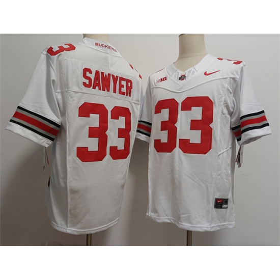 >Men's Ohio State Buckeyes #33 Jack Sawyer White 2025 F.U.S.E. Limited Stitched Jersey