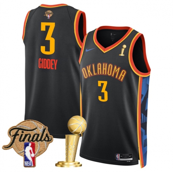 Men's Oklahoma City Thunder #3 Dillon Jones Black 2025 Finals And Finals Champions City Edition Stitched Basketball Jersey