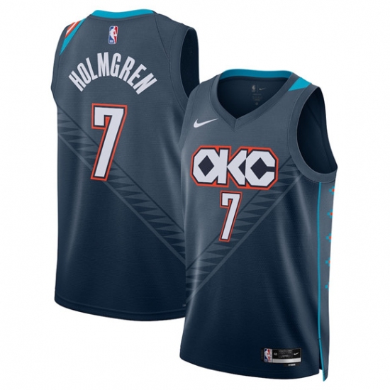 Men's Oklahoma City Thunder #7 Chet Holmgren Navy 2025-26 City Edition Swingman Stitched Basketball Jersey