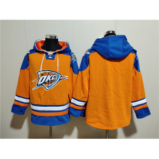 >Men's Oklahoma City Thunder Blank Orange Blue Lace-Up Pullover Hoodie