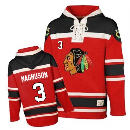 Home>NHL>Chicago Blackhawks>Keith Magnuson>Men's Old Time Hockey Chicago Blackhawks #3 Keith Magnuson Authentic Red Sawyer Hooded Sweatshirt NHL Jersey