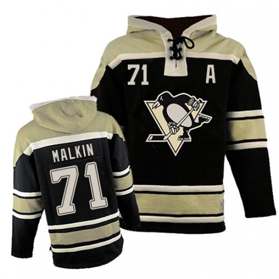 Home>NHL>Pittsburgh Penguins>Evgeni Malkin>Men's Old Time Hockey Pittsburgh Penguins #71 Evgeni Malkin Premier Black Sawyer Hooded Sweatshirt NHL Jersey