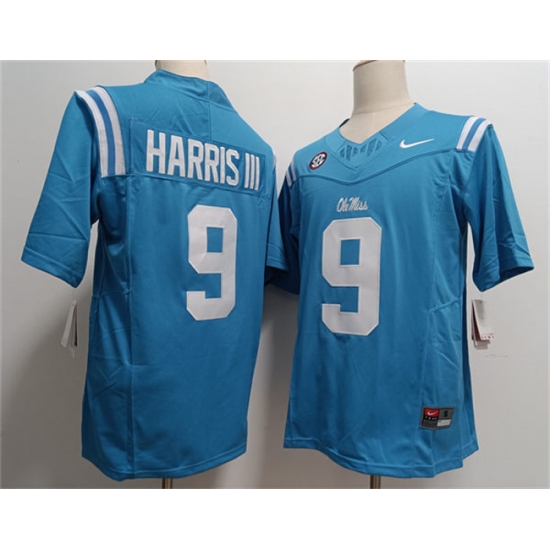 Men's Ole Miss Rebels #9 Tres Harris III Powder Blue F.U.S.E. Stitched Football Jersey