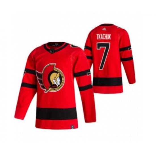 >Men's Ottawa Senators #7 Brady Tkachuk Red 2020-21 Reverse Retro Alternate Hockey Jersey