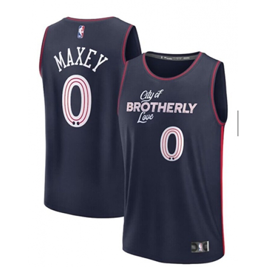 Men's Philadelphia 76ers #0 Tyrese Maxey Navy Blue City Player Jersey