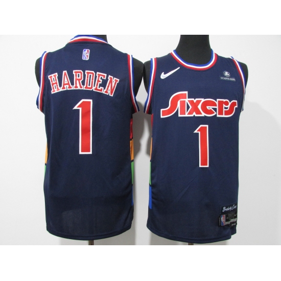 Men's Philadelphia 76ers #1 James Harden Navy 75th Anniversary Association Edition Swingman Stitched Jersey