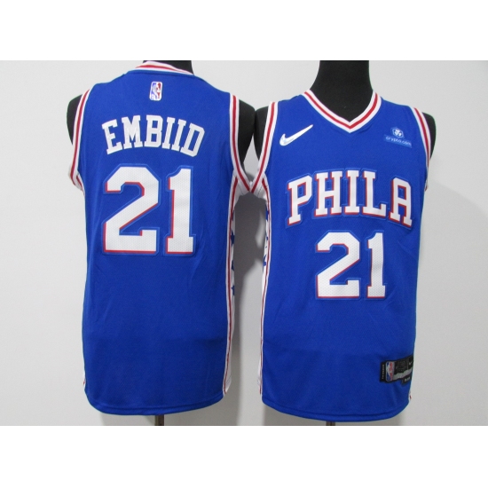 Men's Philadelphia 76ers #21 Joel Embiid Blue 75th Anniversary Association Edition Swingman Stitched Jersey