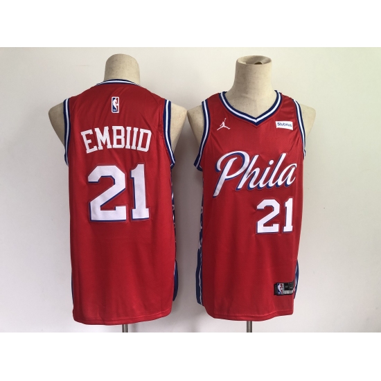 Men's Philadelphia 76ers #21 Joel Embiid Red Basketball Swingman Jersey
