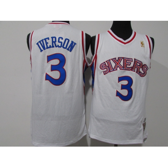 Men's Mitchell and Ness Philadelphia 76ers #3 Allen Iverson Swingman White Throwback NBA Jersey