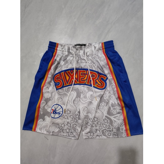 >Men's Philadelphia 76ers White Blue Shorts