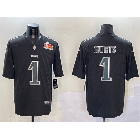 Men's Philadelphia Eagles #1 Jalen Hurts Black 2025 Super Bowl LIX Fashion Vapor Untouchable Limited Stitched Football Jersey