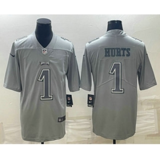Men's Philadelphia Eagles #1 Jalen Hurts Gray Atmosphere Fashion Stitched Jersey