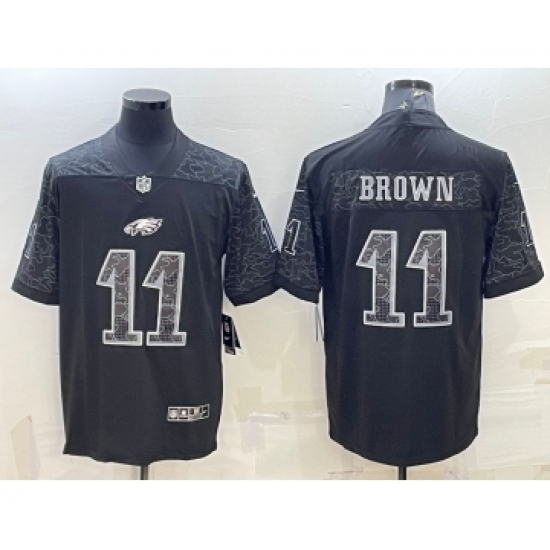 Men's Philadelphia Eagles #11 AJ Brown Black Reflective Limited Stitched Football Jersey