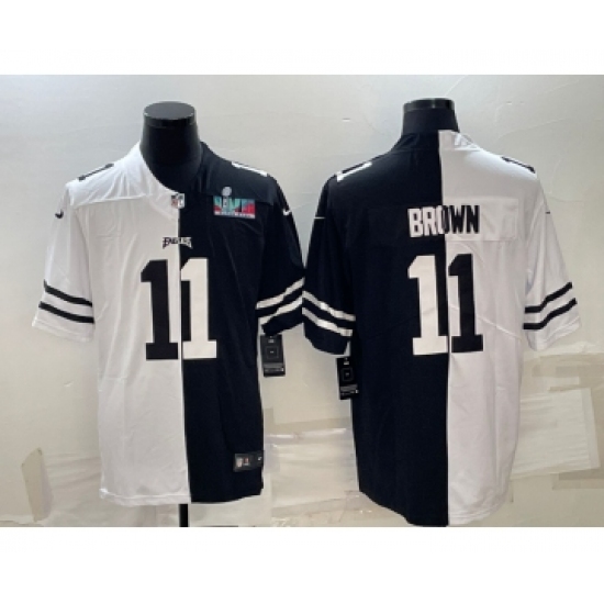 >Men's Philadelphia Eagles #11 A.J. Brown Black & White Split Super Bowl LVII Patch Limited Stitched Jersey