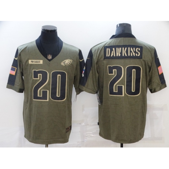 >Men's Philadelphia Eagles #20 Brian Dawkins Nike Olive 2021 Salute To Service Limited Player Jersey