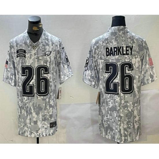 >Men's Philadelphia Eagles #26 Saquon Barkley 2024 FUSE Arctic Camo Salute to Service Limited Stitched Jersey