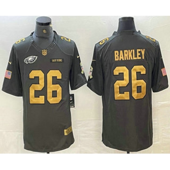 Men's Philadelphia Eagles #26 Saquon Barkley Anthracite Gold 2016 Salute To Service Stitched Nike Limited Jersey