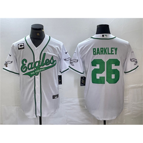 Men's Philadelphia Eagles #26 Saquon Barkley White With 3-star C Cool Base Baseball Stitched Jerseys