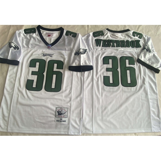 >Men's Philadelphia Eagles #36 Brian Westbrook White Throwback Stitched Football Jersey