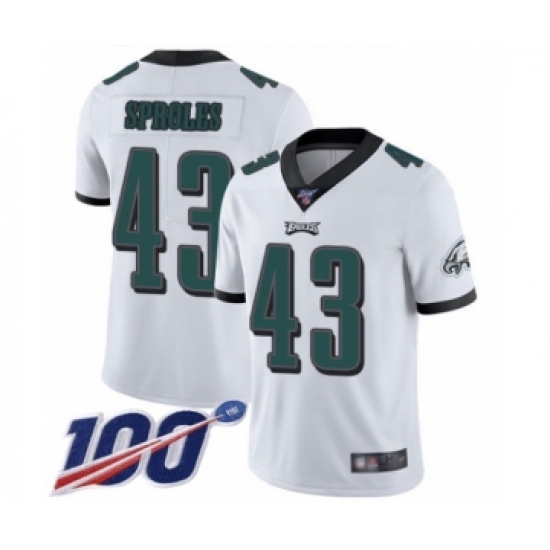 Men's Philadelphia Eagles #43 Darren Sproles White Vapor Untouchable Limited Player 100th Season Football Jersey