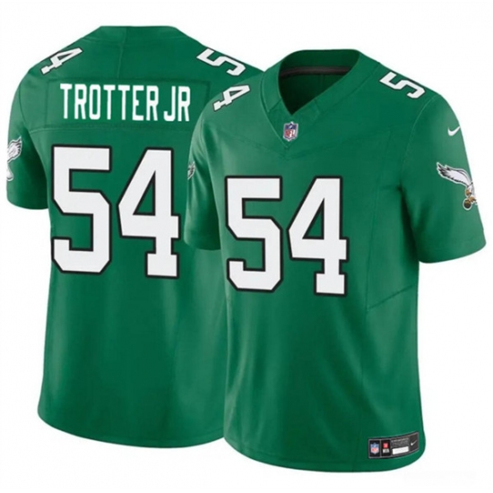 >Men's Philadelphia Eagles #54 Jeremiah Trotter Jr Green 2024 Draft F.U.S.E. Vapor Untouchable Throwback Limited Football Stitched Jersey