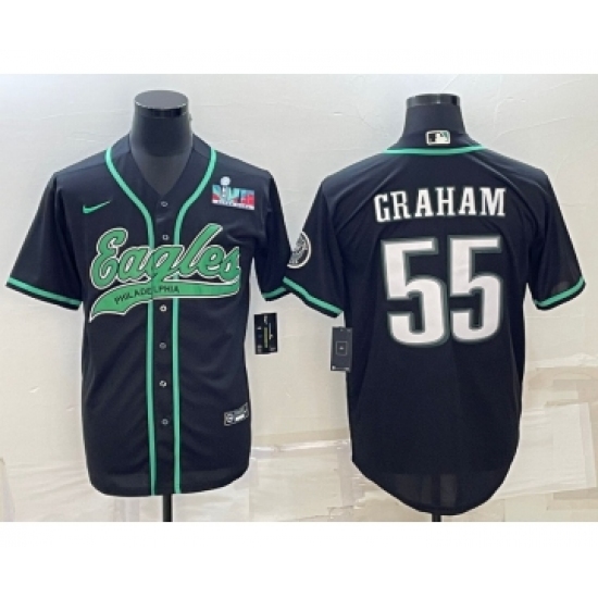 >Men's Philadelphia Eagles #55 Brandon Graham Black With Super Bowl LVII Cool Base Stitched Baseball Jersey