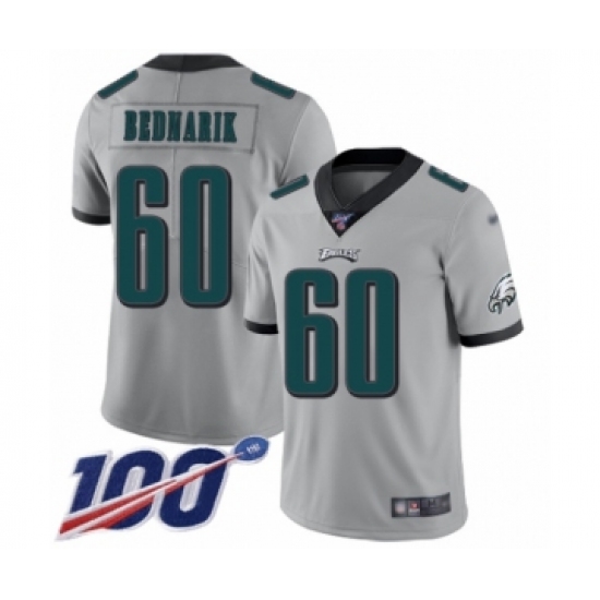 >Men's Philadelphia Eagles #60 Chuck Bednarik Limited Silver Inverted Legend 100th Season Football Jersey