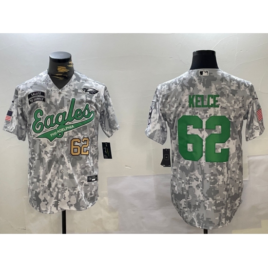 >Men's Philadelphia Eagles #62 Jason Kelce Arctic Camo 2024 Salute to Service Stitched Baseball Jerseys