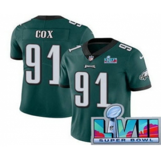 Men's Philadelphia Eagles #91 Fletcher Cox Limited Green Super Bowl LVII Vapor Jersey
