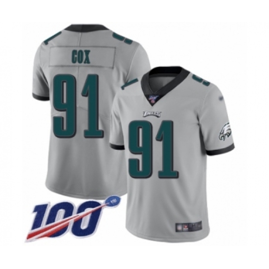 >Men's Philadelphia Eagles #91 Fletcher Cox Limited Silver Inverted Legend 100th Season Football Jersey