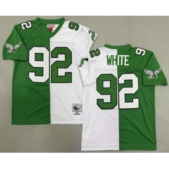 Men's Philadelphia Eagles #92 Reggie White Green White Split 1990 Throwback Jersey