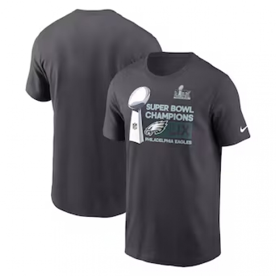 >Men's Philadelphia Eagles Nike Anthracite Super Bowl LIX Champions Locker Room Trophy Collection T-Shirt