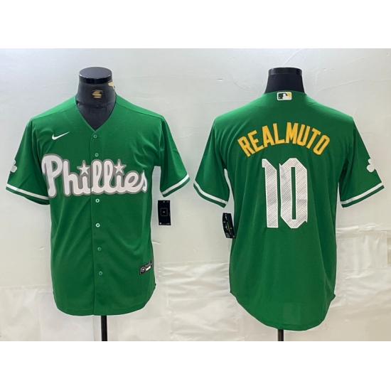 Men's Philadelphia Phillies #10 JT Realmuto Kelly Green Cool Base Jersey