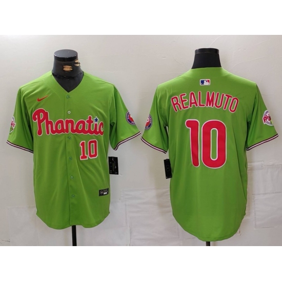 Men's Philadelphia Phillies #10 JT Realmuto Number Green With Stitched Cool Base Nike Jersey